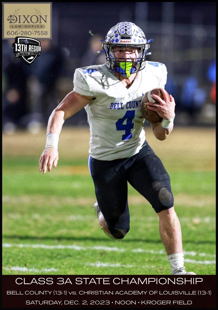 LOG MOUNTAIN — Dudley Hilton’s Bell County Bobcats will attempt to win the football program’s third state championship on Saturday when they face-off against Christian Academy of Louisville (CAL) at noon Saturday in the Class 3A State Title game at Kroger Field.