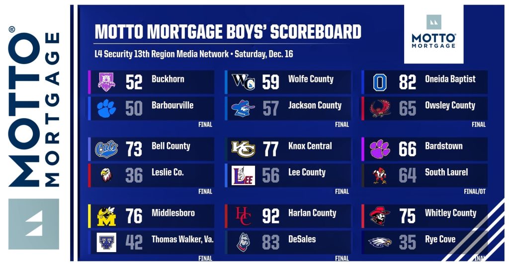 Motto Mortgage 13th Region Boys’ Saturday Night Scoreboard December 17, 2023December 17, 2023 Les Dixon Share on facebookShare on twitter
