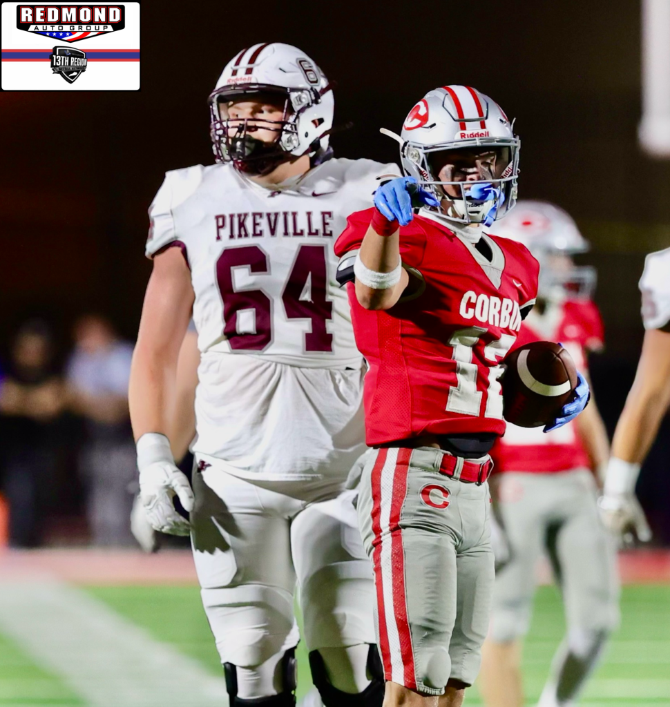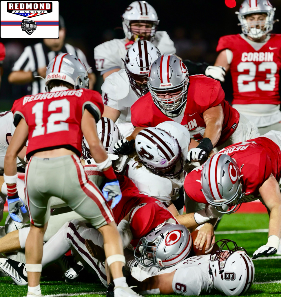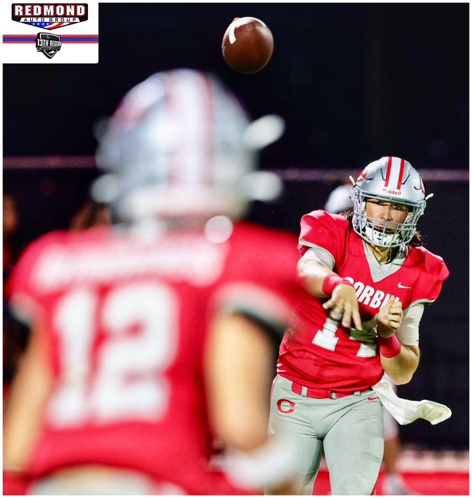 The Redhounds’ opening drive went just the way it was scripted. Corbin moved down field as Kade Elam’s 37-yard touchdown pass to Noah Cima gave the Redhounds a 7-0 lead at the 8:05 mark of the first quarter.