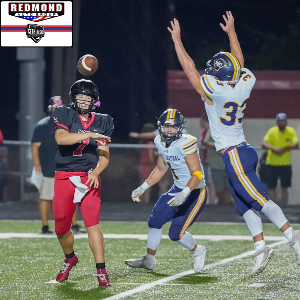 Noah Smith’s rushing touchdown gave the Cardinals a 6-0 lead just two and a half minutes into the game before a touchdown by Johnathan Hobbs allowed Knox Central to take a 7-6 edge with 1:31 remaining in the first quarter.