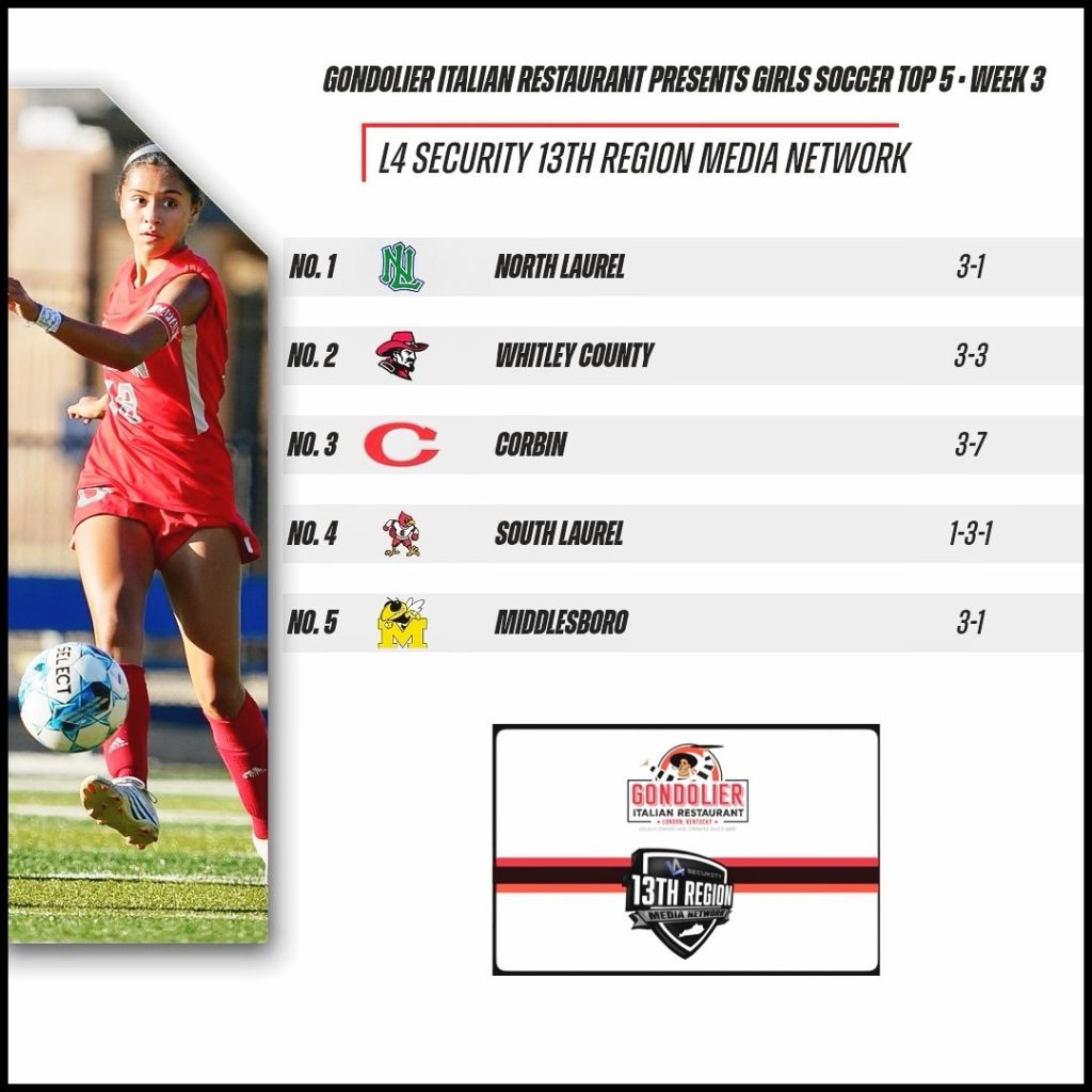 Gondolier Italian Restaurant Presents Week Three 13th Region Girls Soccer Top 5 Rankings September 8, 2024 Les Dixon Share on facebookShare on twitter