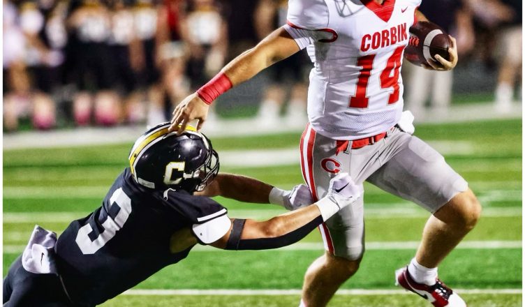 Corbin answered with Kade Elam hitting Colton Creekmore with a four-yard touchdown pass to tie the game at seven apiece with 9:19 remaining in the first quarter.