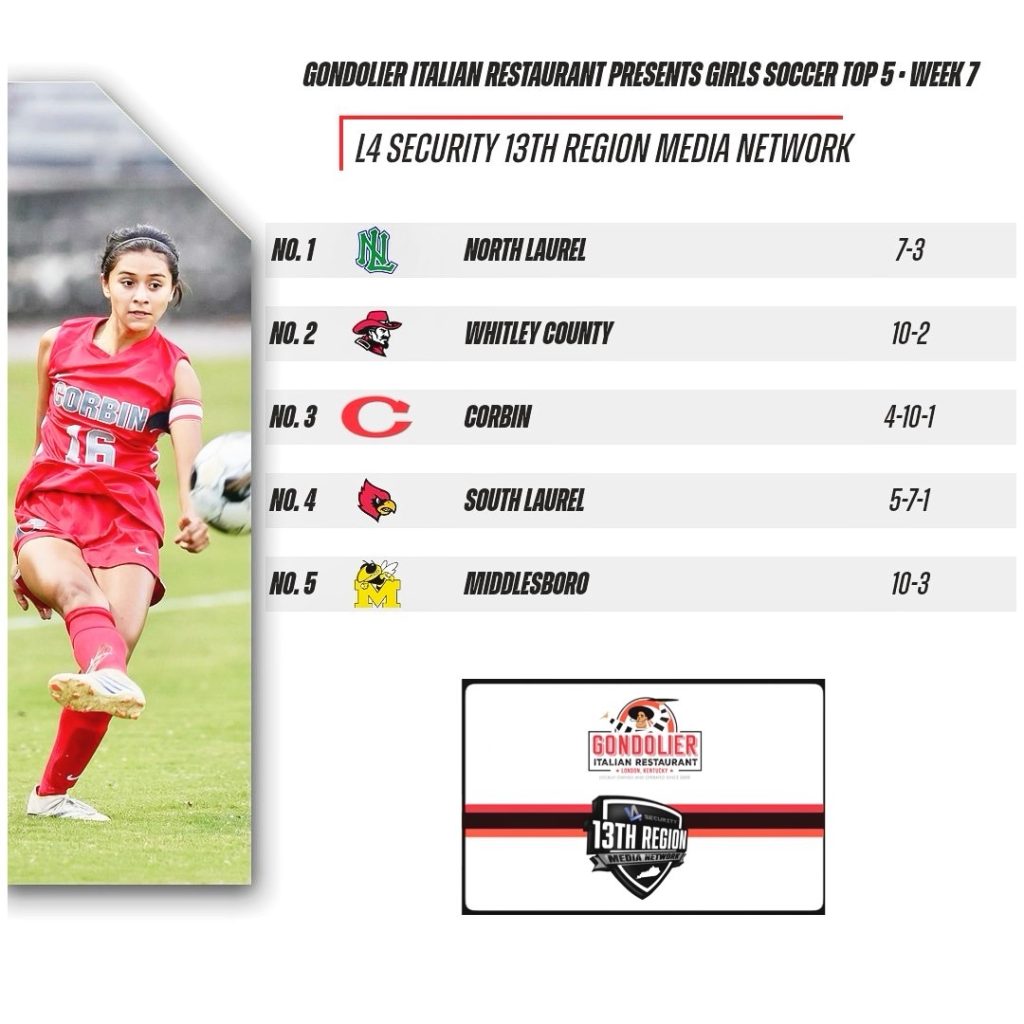 Gondolier Italian Restaurant Presents Week Seven 13th Region Girls Soccer Top 5 Rankings October 6, 2024 Les Dixon Share on facebookTweet on twitter