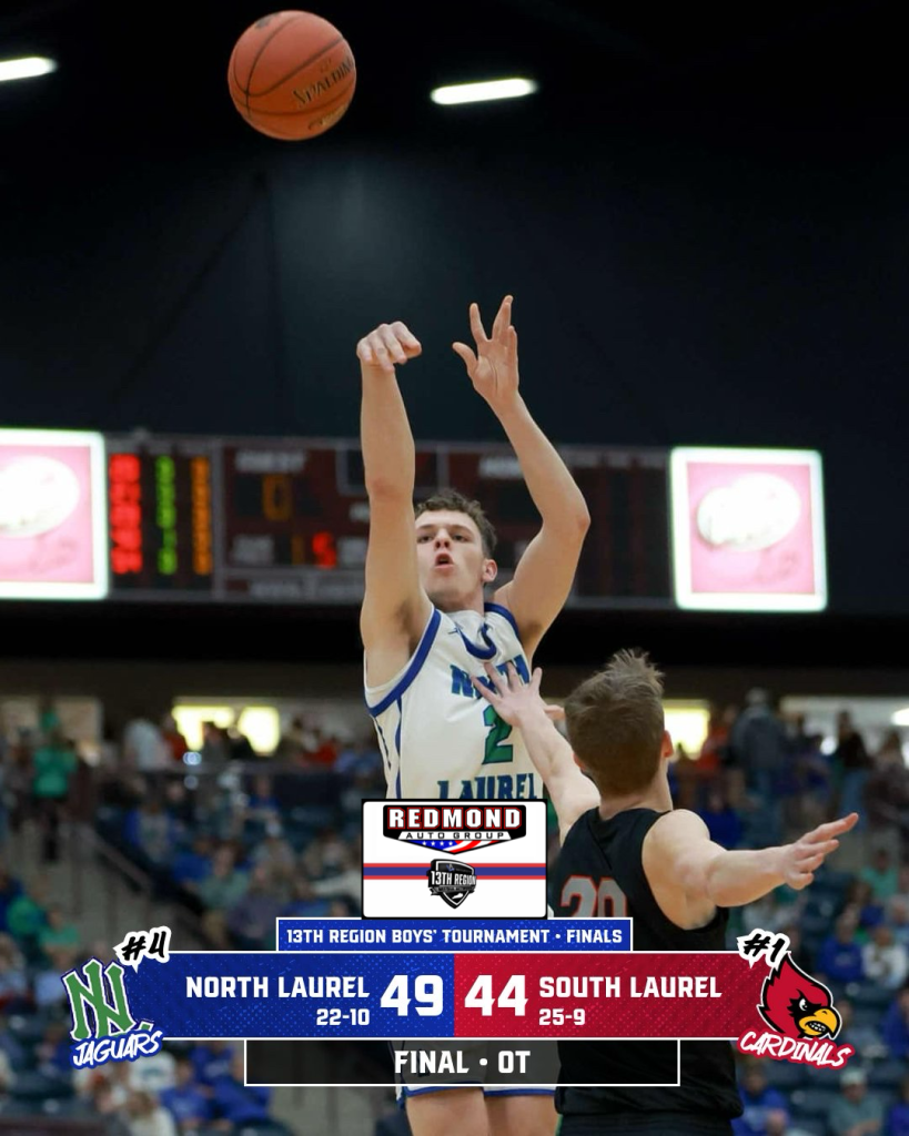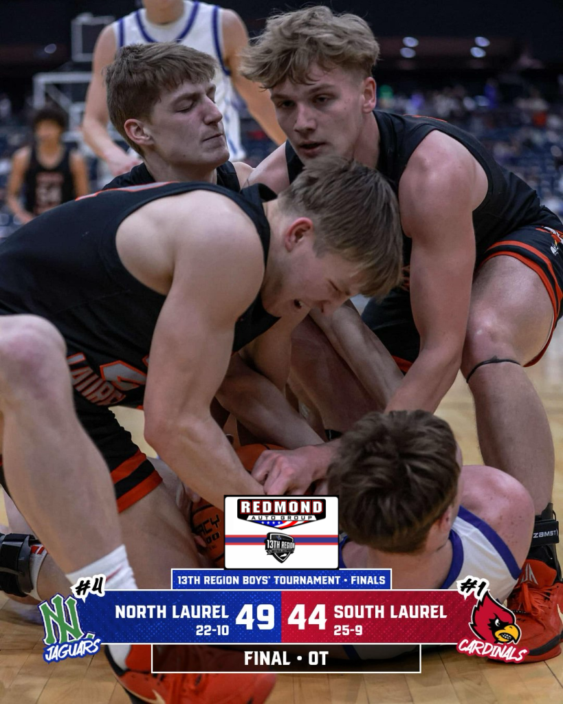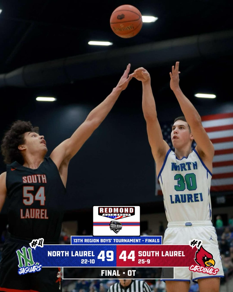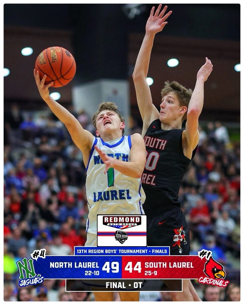 Both North Laurel and South Laurel gave their all for 36 minutes but in the end, the Jaguars did just enough to pull off a 49-44 win, capturing their first region championship since 2023, and fourth overall (2012, ‘22, ‘23 and ‘25).