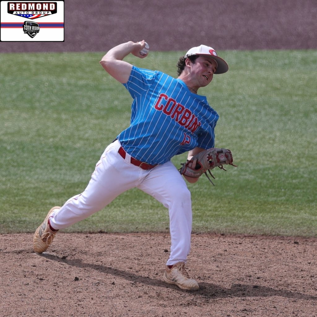 13th Region Tournament MVP Lucas Tarvin got the start on the mound for Corbin, but lasted only 2.1 innings, allowing three hits and three earned runs. Clay Botner tossed 2.2 innings, surrendering six hits and four earned runs while Ethan Abner pitched a scoreless and hitless inning.