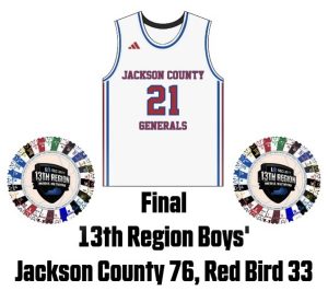 MCKEE — Parker Stewart’s Jackson County Generals are off and running, improving to 3-0 thanks to a 76-33 defeat of Red Bird during the final day of the PRTC Classic.