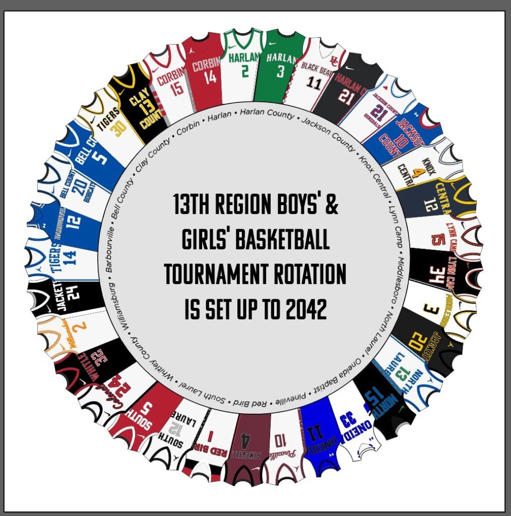 The 13th Region boys’ and girls’ basketball tournaments will continue their rotational hosting system at the Corbin Arena for this upcoming season while the updated rotation for schools hosting both tournaments now stretches all the way through the 2041-42 season.